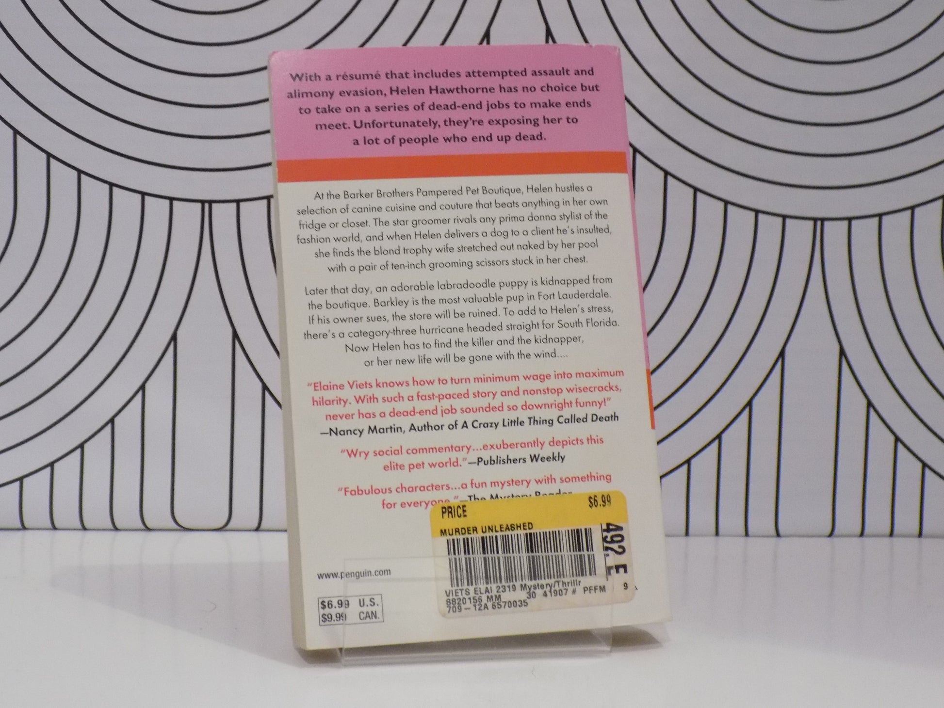 Helen Hawthorne has no choice but to take on a series of dead-end jobs to make ends meet. Unfortunately, they're exposing her to a lot of people who end up dead. Her latest gig at the Pampered Pet Boutique isn't proving to be a warm and furry exception-and now she's got a murder to solve and a kidnapped pup to find, all before a Category 3 hurricane hits.