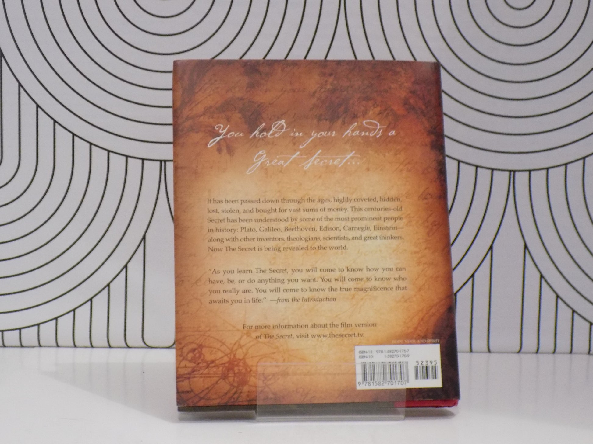 The worldwide bestselling phenomenon that has helped millions tap the power of the law that governs all our lives to create--intentionally and effortlessly--a joyful life. In 2006, a groundbreaking feature-length film revealed the great mystery of the universe--The Secret--and, later that year, Rhonda Byrne followed with a book that became a worldwide bestseller. Fragments of a Great Secret have been found in the oral traditions, in literature, in religions, and philosophies throughout the centuries. For the first time, all the pieces of The Secret come together in an incredible revelation that will be life-transforming for all who experience it. In this book, you'll learn how to use The Secret in every aspect of your life--money, health, relationships, happiness, and in every interaction you have in the world. You'll begin to understand the hidden, untapped power that's within you, and this revelation can bring joy to every aspect of your life. The Secret contains wisdom from modern-day teachers--men and women who have used it to achieve health, wealth, and happiness. By applying the knowledge of The Secret, they bring to light compelling stories of eradicating disease, acquiring massive wealth, overcoming obstacles, and achieving what many would regard as impossible. This description may be from another edition of this product.